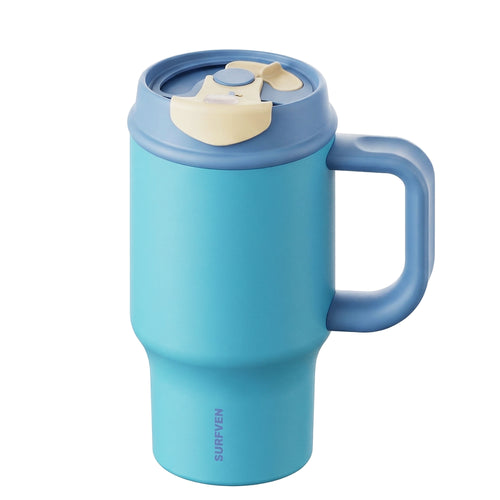 SURFVEN 30oz Insulated Stainless Steel Tumbler with Handle and Leak Proof Dual Sip Lid, Blue